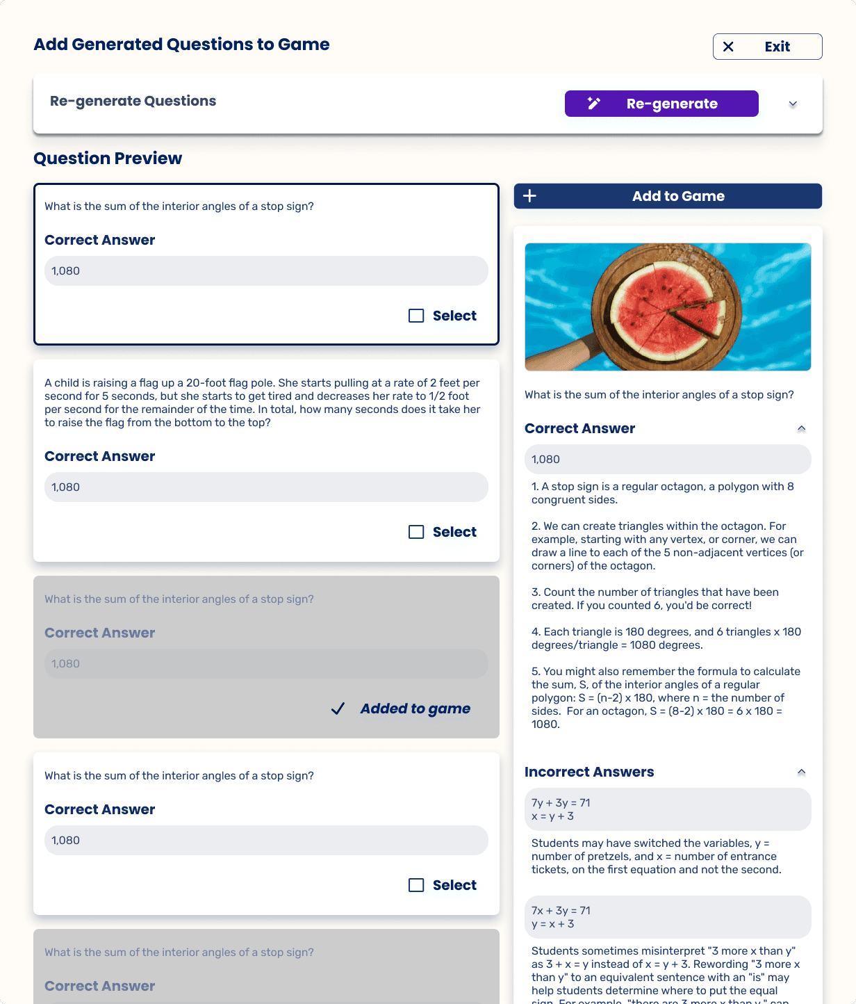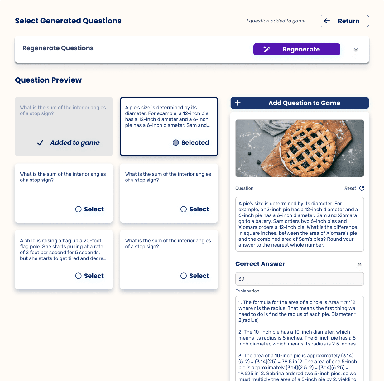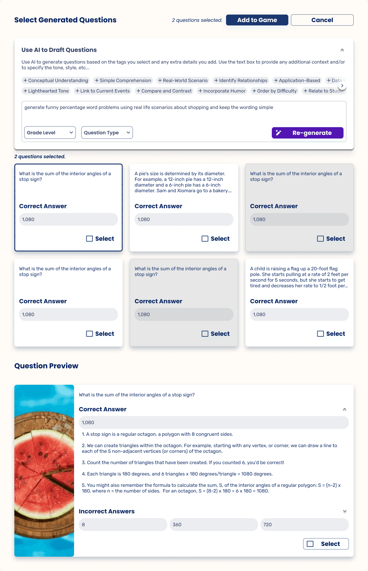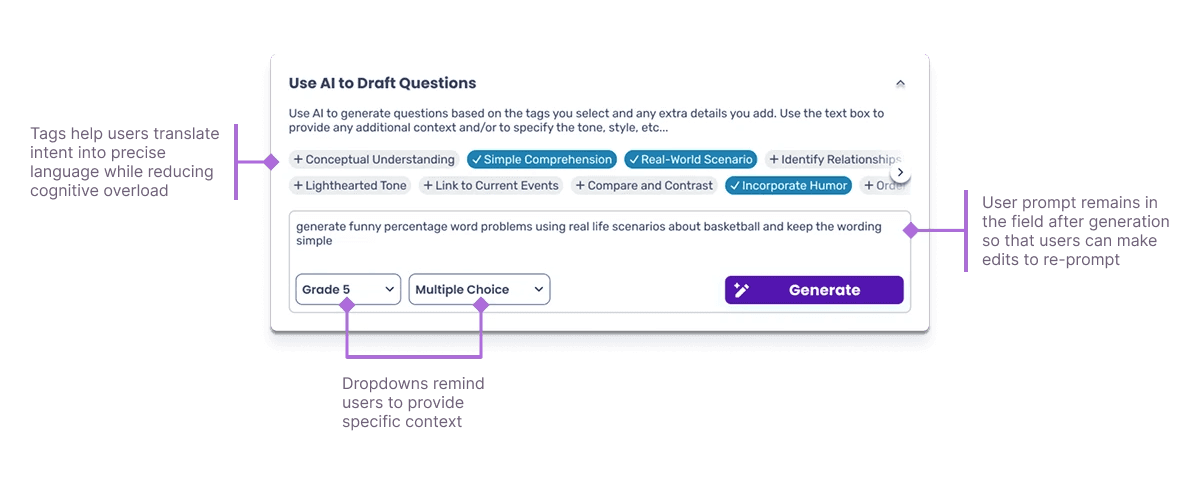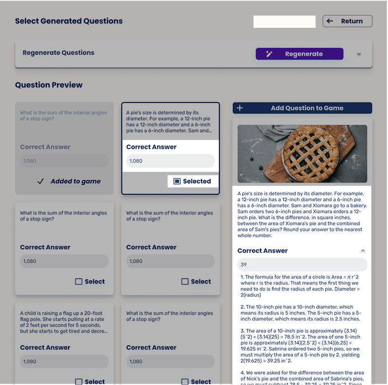 The team recognized an opportunity to incorporate AI into the game creation process, helping teachers generate questions, answers, and explanations while keeping teachers in control of quality and context.